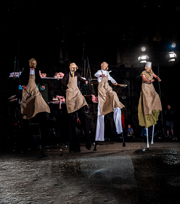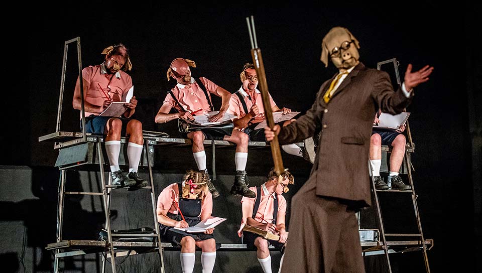 Inspired by Orwell's timeless classic, 'Animal Farm', this unsettling theatrical production transports audiences to a seemingly idyllic pig farm. Beneath its façade of utopia, however, lies a sinister reality. Adult pigs, masquerading as benevolent educators, indoctrinate their young charges with fabricated truths. As the little pigs begin to question the status quo, a nascent rebellion takes shape. But the ruling elite, personified by towering, menacing pig guardians, ruthlessly suppress dissent. Featuring stylized, stilted figures and a darkly comedic tone, 'Animal School' delivers a scathing critique of manipulation, conformity, and the devastating consequences of rebellion. Witness this thought-provoking spectacle, a searing commentary on the human condition."