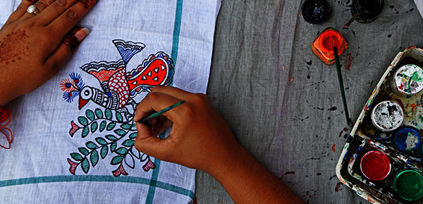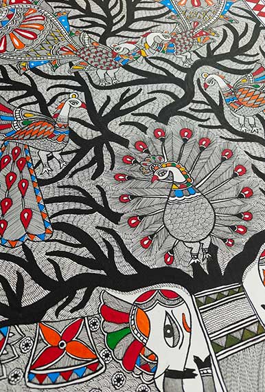 Remant Kumar Mishra is a third-generation Mithila painting artist from Jitwarpur, Bihar. He has been practicing since childhood, learning from his family. Over the years, he has worked on numerous projects globally and in India. In addition to creating art, Remant teaches Madhubani painting in India and abroad and serves as an Assistant Professor at Chitrakala Sansthan, Government of Bihar. He has promoted Mithila art in countries like Sri Lanka, China, Italy, and Singapore, working on various mediums, including walls, canvas, and textiles. During the lockdown, Remant introduced Madhubani painting on masks to raise awareness and support artisans, gaining recognition as the "Mask Man of India."